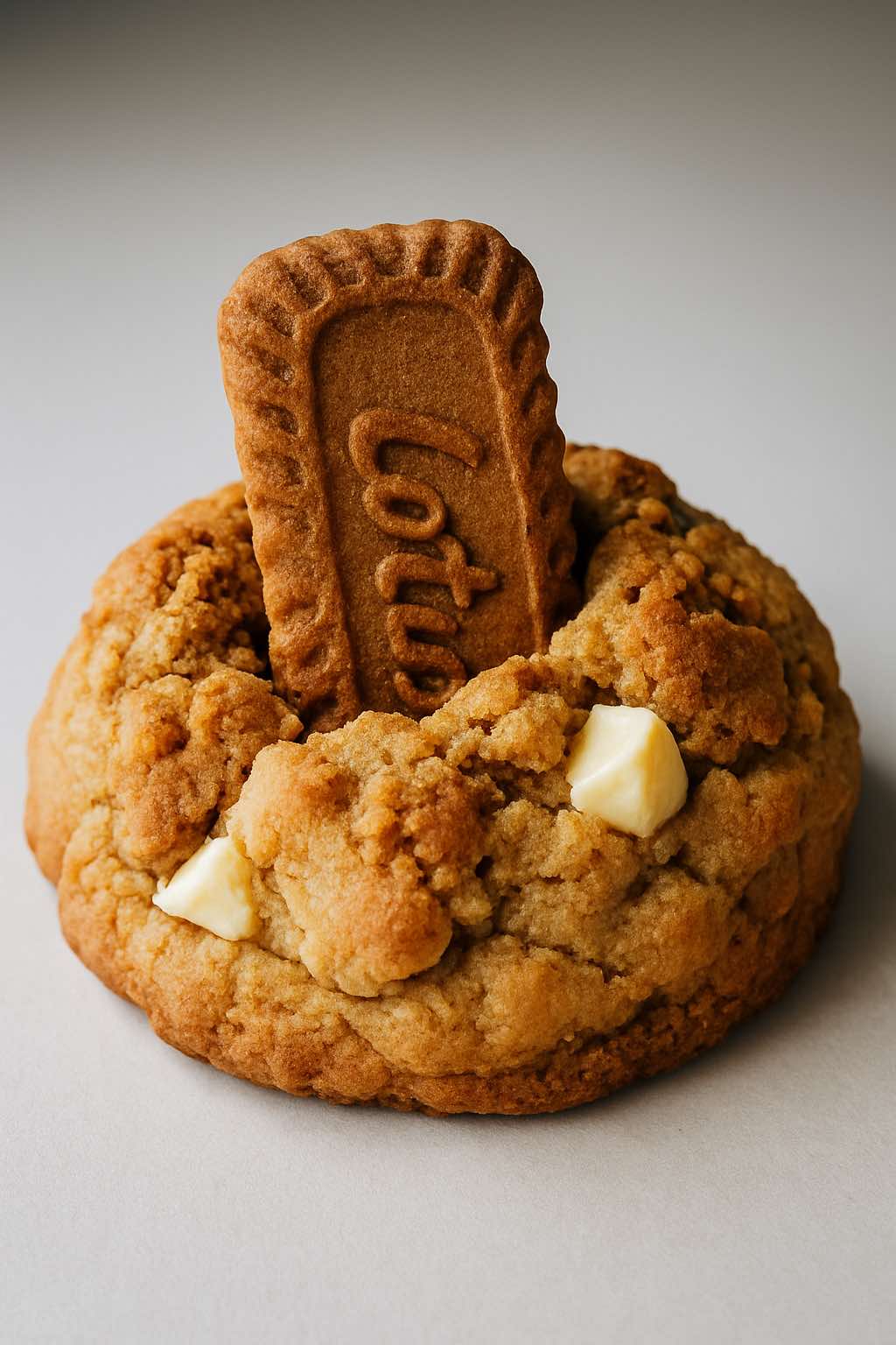 Flour (Wheat), brown sugar, white sugar, butter (Milk), eggs, vanilla essence, cornstarch, baking soda, baking powder, salt, Biscoff spread (Wheat, Soy), Biscoff biscuits (Wheat, Soy), malt biscuits (Wheat, Milk), white chocolate (Milk, Soy)